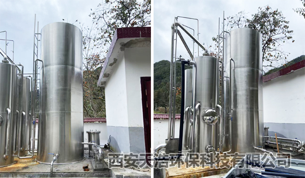 陜西商洛農村水質提升項目日供水量200~240噸,水源為山泉水,采用混凝、沉淀、過濾、消毒的處理工藝流程,安裝一臺10噸/小時304不銹鋼TH-YYA一體化凈水設備,配粗濾器、四管式管道混合器、絮凝劑加藥裝置、消毒劑投加裝置。