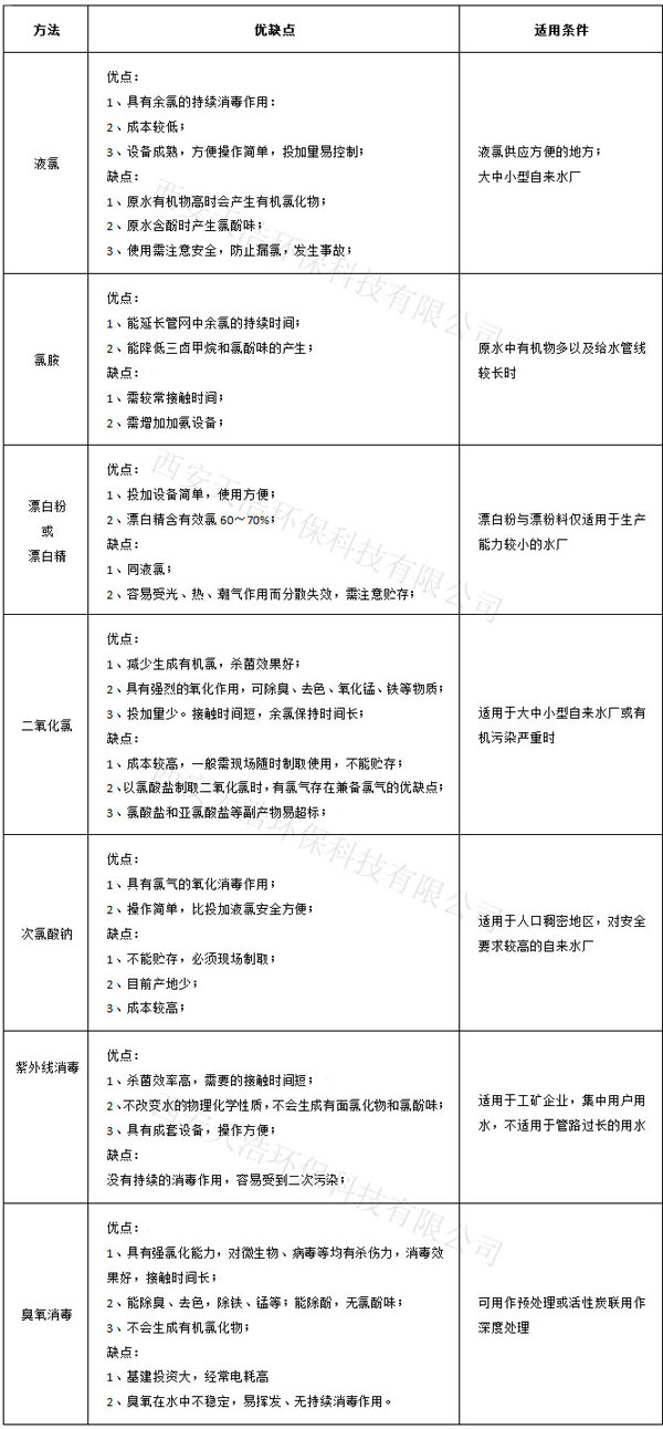 目前自來水廠普遍采用氯和氯胺消毒、二氧化氯消毒,F(xiàn)將這些自來水廠常用的消毒方法優(yōu)缺點(diǎn)及適用條件見下表:
